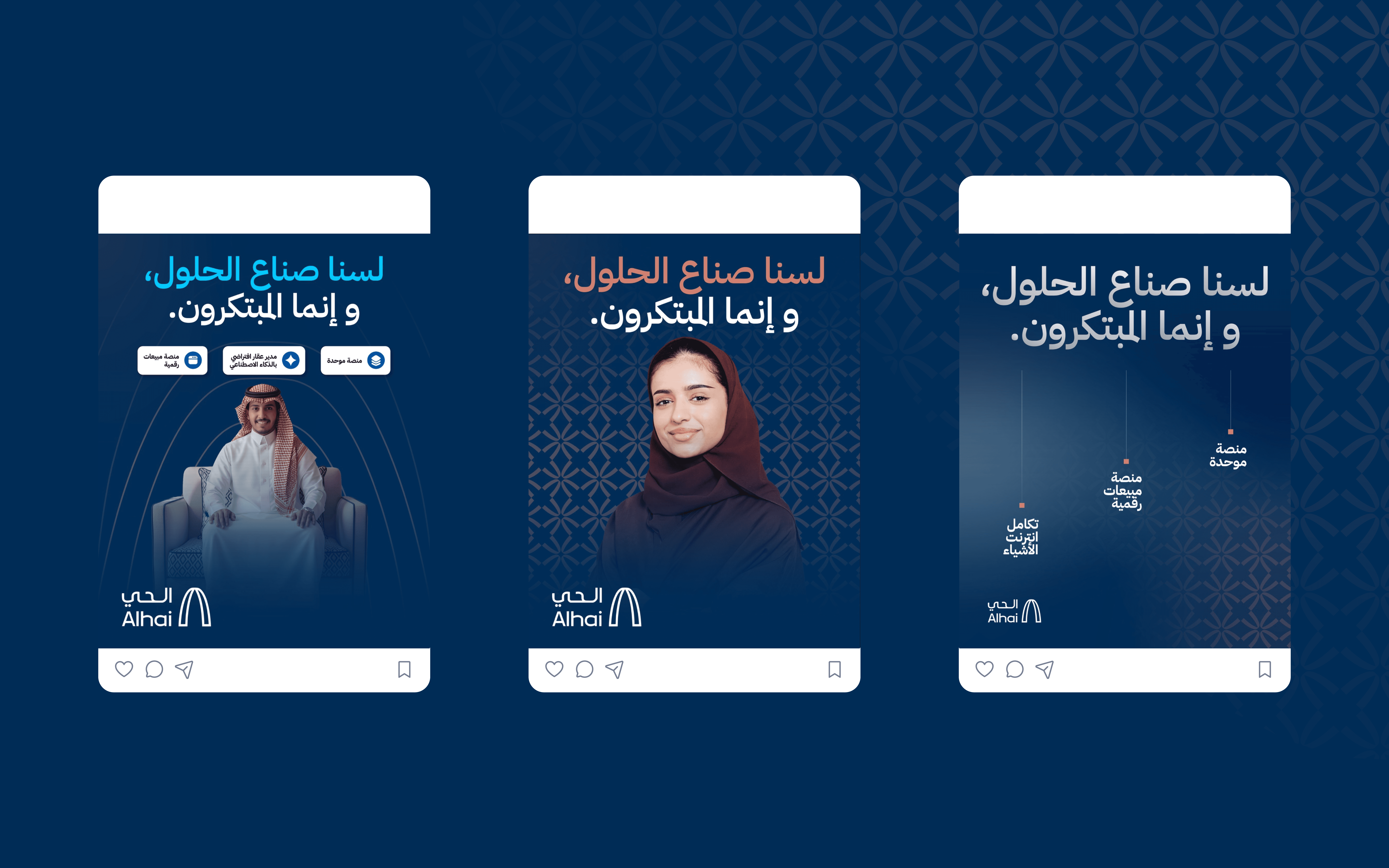 Alhai is a proptech company providing automated management systems for real estate agents and community operators in Saudi Arabia. The challenge was to enhance the brand's positioning and visual presence to better communicate its value as a modern, reliable B2B solution in a traditional real estate market. The brand needed to balance technological innovation with the trust and professionalism expected by property management stakeholders. We refined the brand's visual system, designed a pitch deck that clearly articulates the platform's value to investors and partners, and developed a social media presence that positions Alhai as a credible, forward-thinking solution in the proptech space. The result: a cohesive brand direction that supports growth conversations, stakeholder engagement, and market credibility.